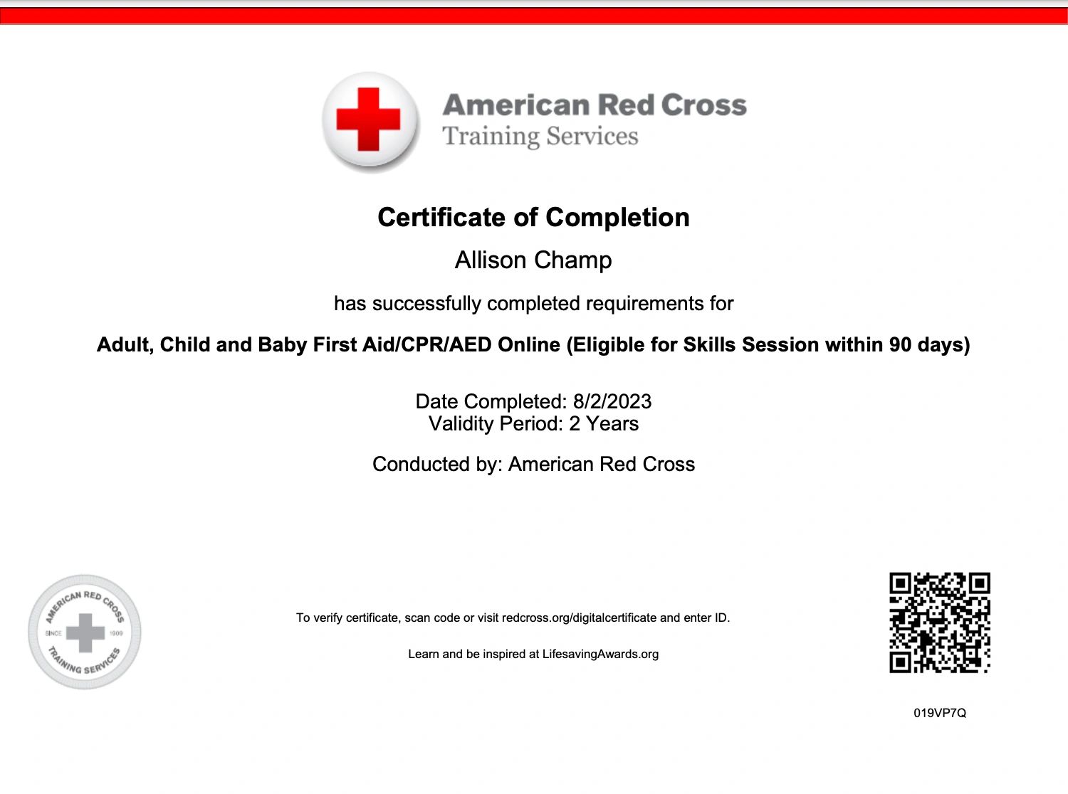 Adult, Child, & Baby First Aid CPR/AED Certification